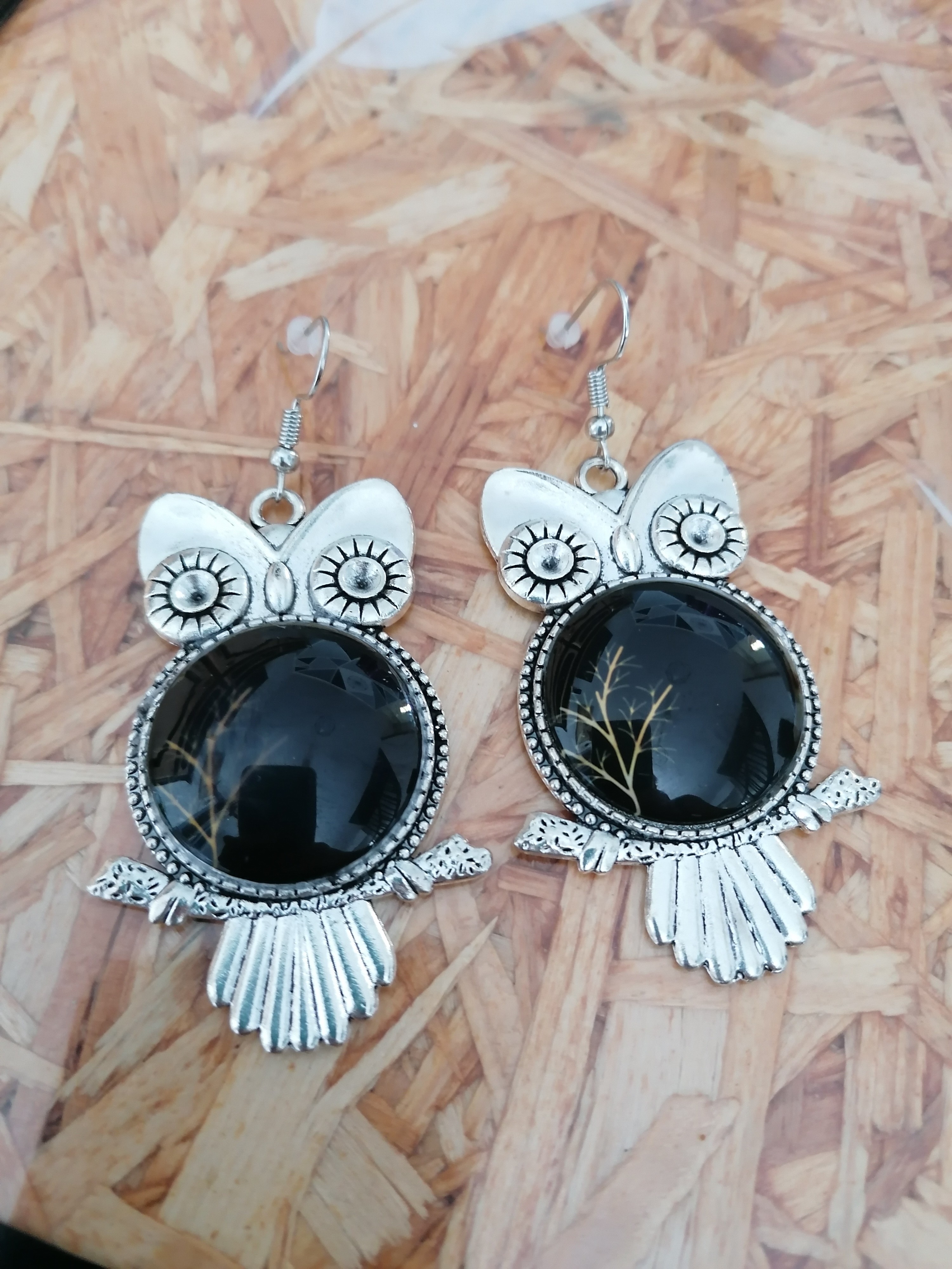 Boucles d'oreilles hibou en argent cabochon modifiable
